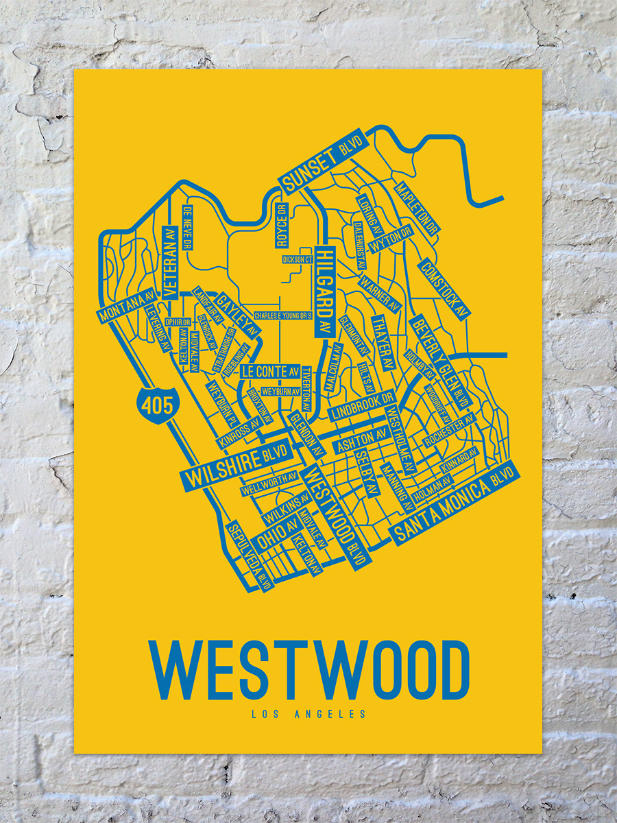 Westwood, Los Angeles Street Map Screen Print School Street Posters