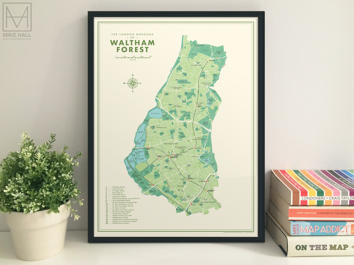 Waltham Forest (London borough) retro map giclee print โ Mike Hall